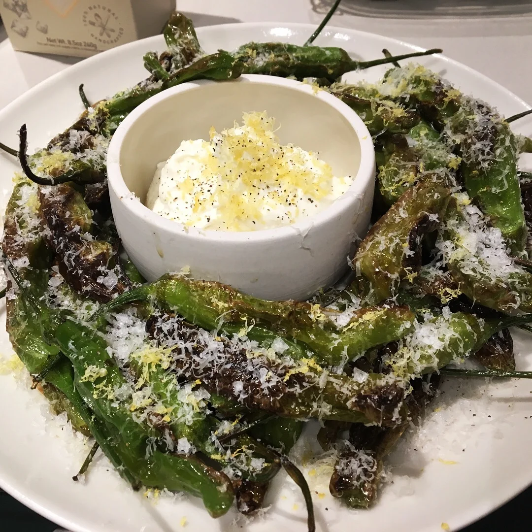First up was some blistered shishito peppers with lemon zest, parmesan, Maldon salt, and goat cheese whipped with more lemon. Trendy, I know, but I'm a sucker for these little guys.